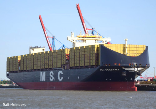 - MSC Zoe (395m) mit 19224 TEU vor Cuxhaven auf dem Weg nach Hamburg zur Schiffstaufe